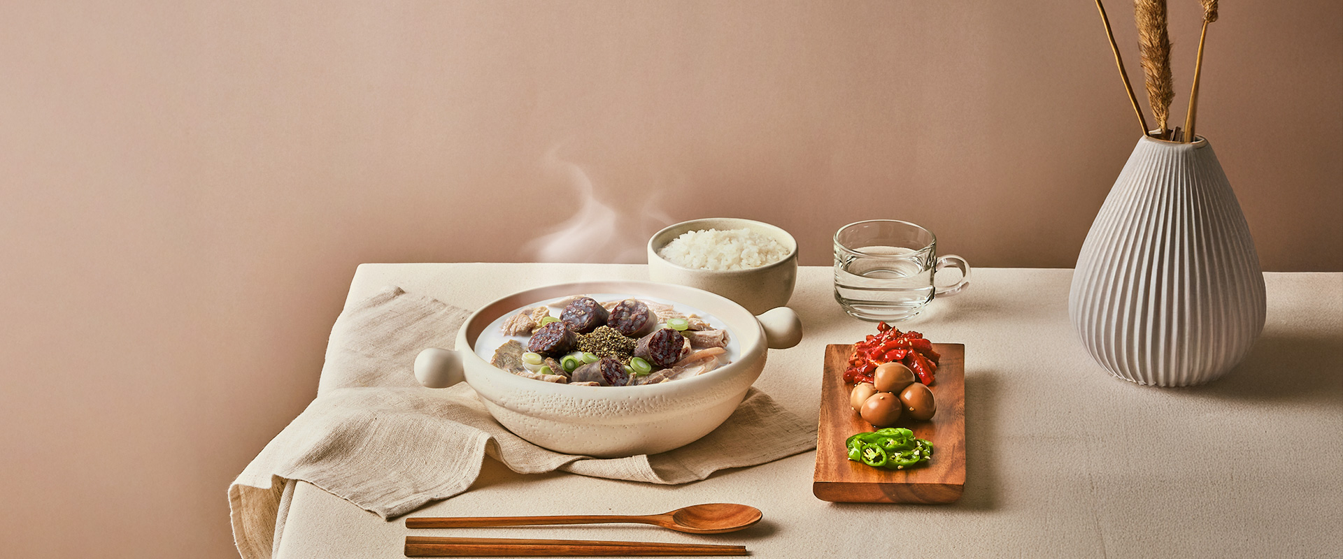 큰맘할매순대국의 첫 시작부터 변하지 않는 철학입니다. 누구나 즐기는 순대국이기에 국내산 돈사골은 기본, 더 정직하고 건강한 재료로 대접합니다.